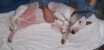 Gavin is recovering nicely. He must’ve lost the strange veterinary hospital smell because Patty was sniffing around his crate today without a single hair on her back raised. She even tried to get him to play and made an attempt to facilitate Gavin’s escape from his crate. She was mouthing the latch on the door trying to open it. Poor pups, they can’t play together until after his stitches are removed and even then they will be strictly supervised for a while to make sure Patty leaves his ear alone.