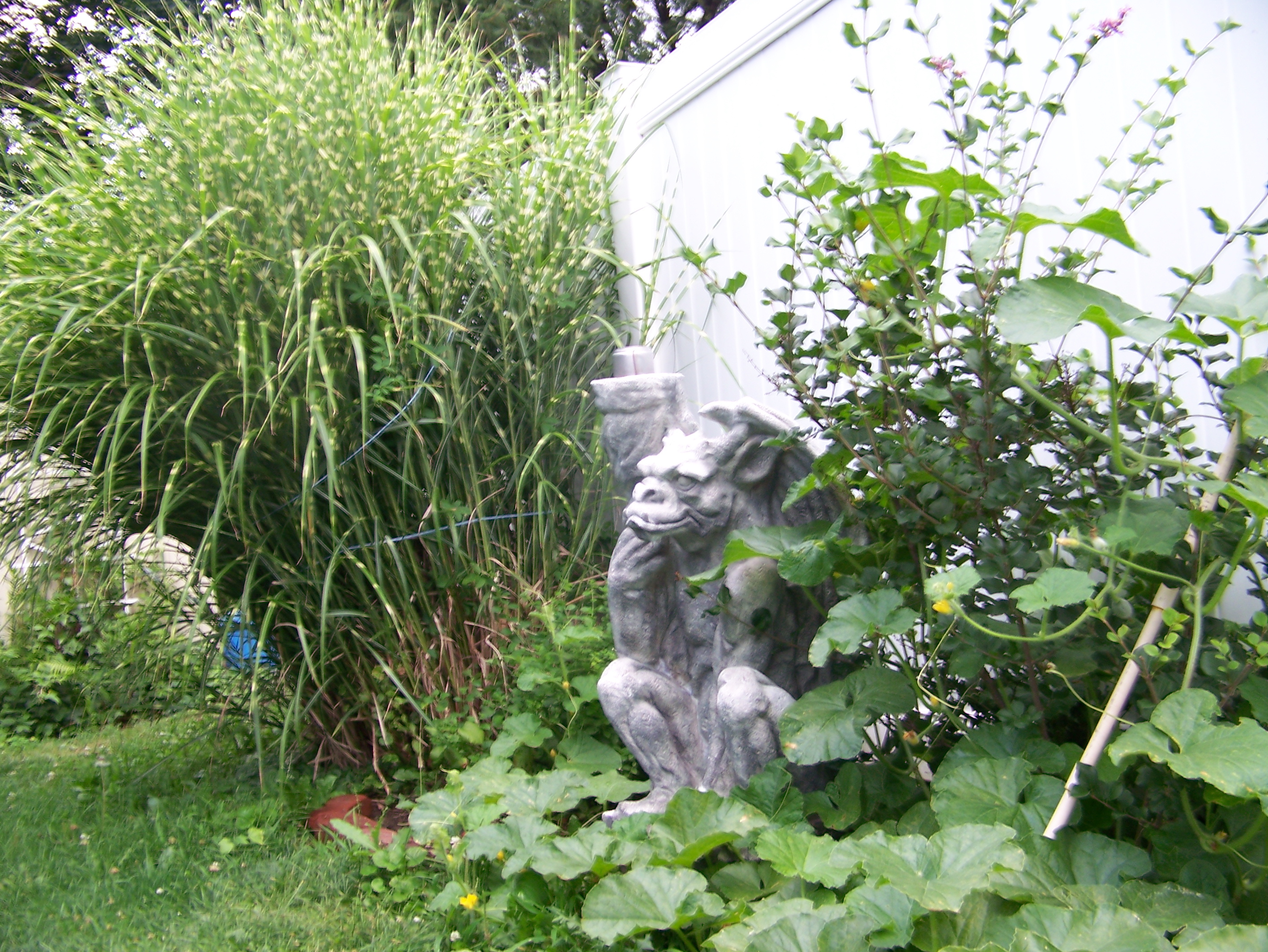 This isn’t a knee height gargoyle like the one pictured with the watermelon, this one is almost as tall as I am. Don’t ask how I kept hitting my knee because I haven’t figured it out yet. I guess I should slow down or something when I’m chasing those bugs. I have managed to put a dent in their population along with the dent in my knee.