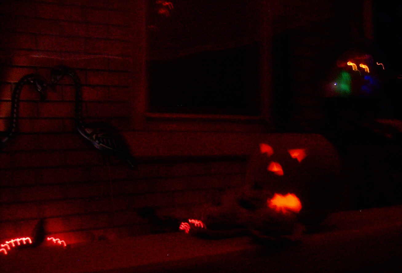 If you’re in the neighborhood on Friday night, come look us up. We’ll be the ones with the music blasting, strobe lights strobing, fog rolling, props a hopping, handing out tons of candy, trick or treat house.