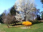 Both the tulip poplar and Sweet gum are pushing out leaves now too. Tulips are blooming, as are the bleeding hearts now. The lilac bush is all green and starting to bud.