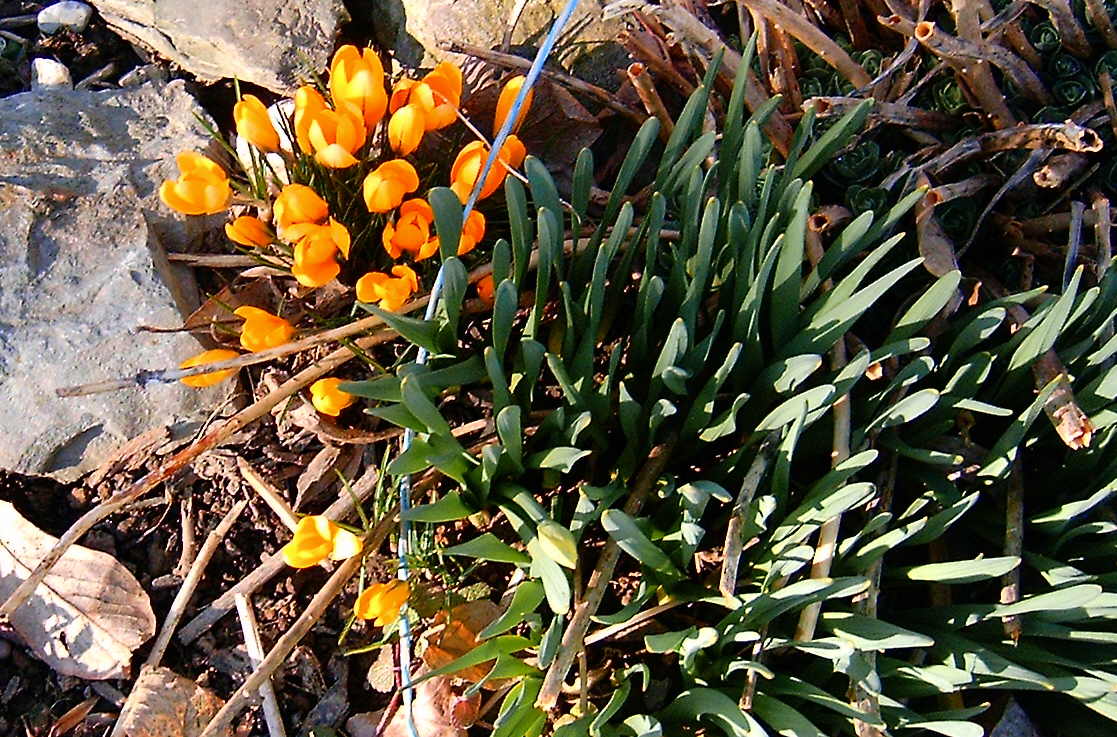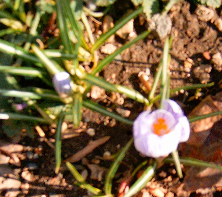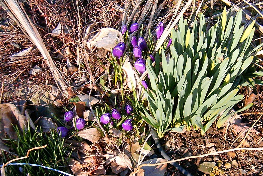 I knew I had to get outside with the camera today before the crocus croaked. These are the first ones that have opened. If you look closely at the daffodils beside them, you’ll see buds! Won’t be long and they will be blooming too.