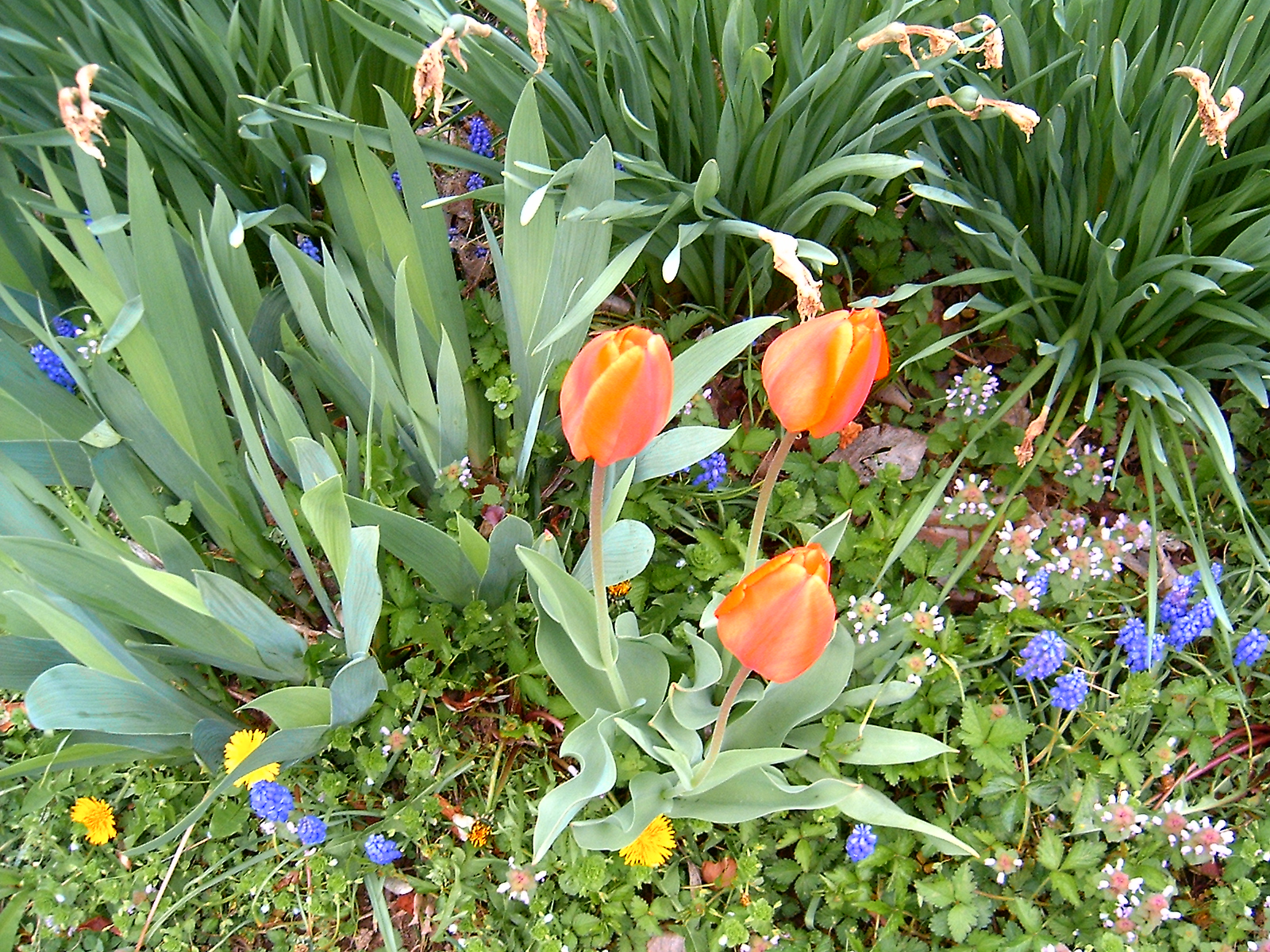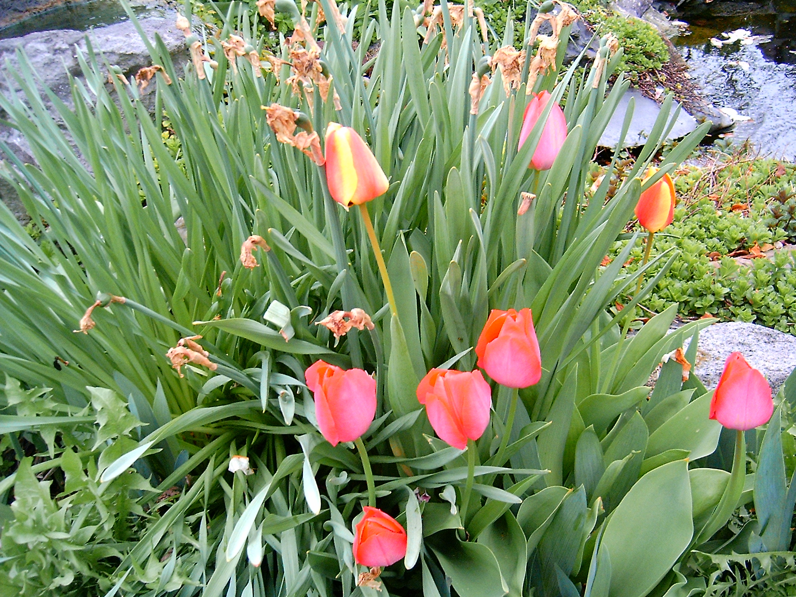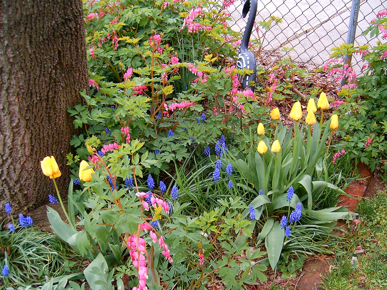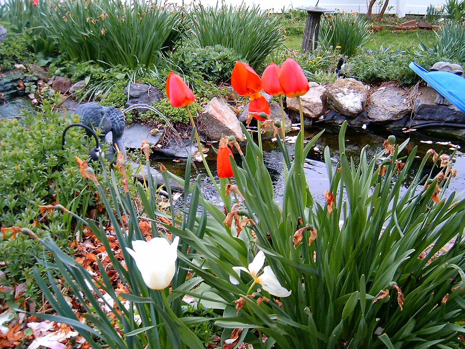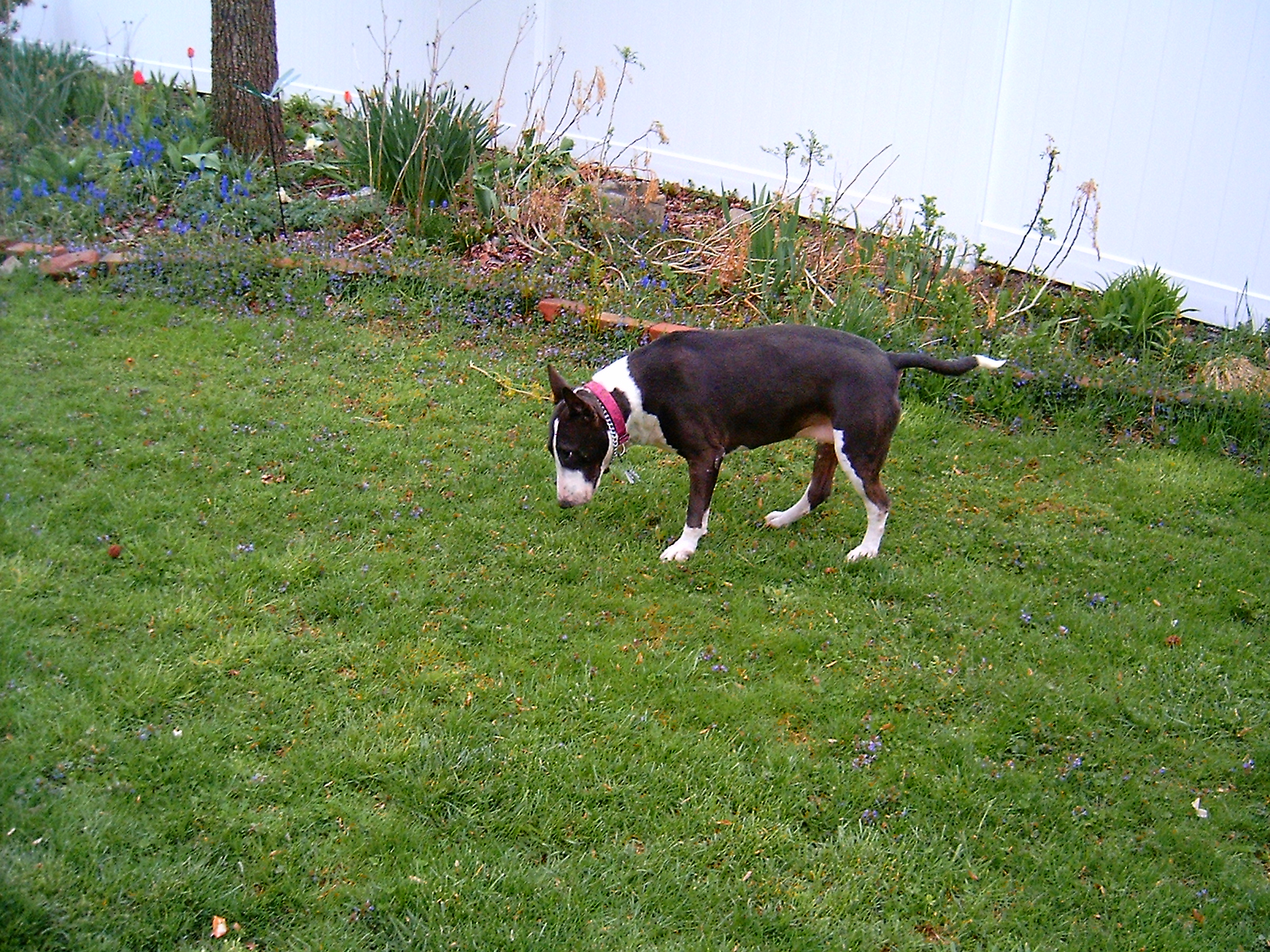 I think the pups are pining away for that lovely warm weather we had the other day. The tulips are blooming and the magnolia blossoms are dropping like crazy. The yard is a sea of pink.