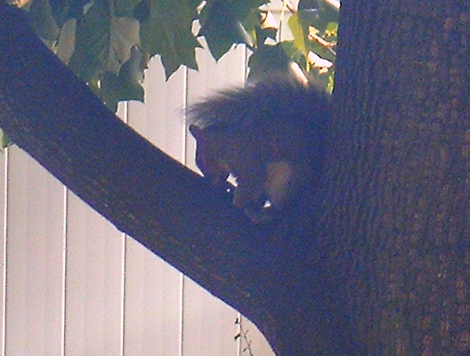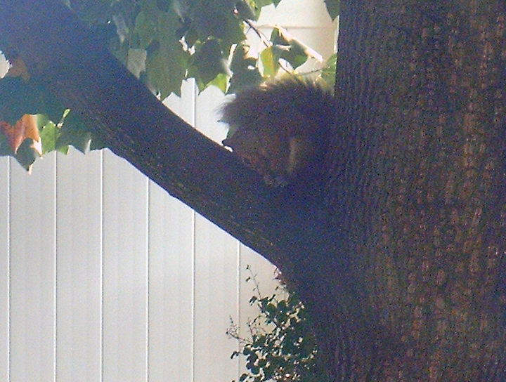 The barking squirrel who scolded The Curmudgeon every time he went outside this past week was napping in the tree.