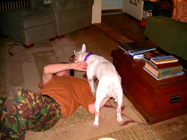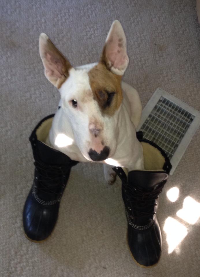 A friend once asked me, “Why in the world would anyone have a Bull Terrier?” This she’d inquired while observing me take evasive action to protect myself from doggy damage. Her face showed she could tell this was a common occurrence and that she found it a tad unnerving.