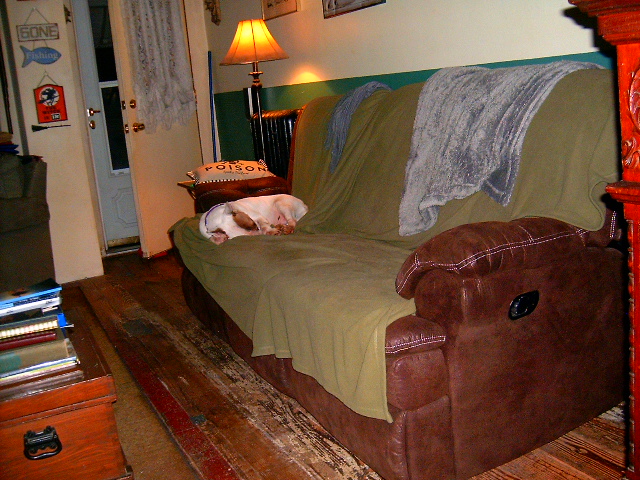 She lounged on her back in The Curmudgeon’s arms from 5 to 6. Then it was Gavin’s turn to be out and about for attention. He loved up on us for about a half an hour and was ready to go to bed.