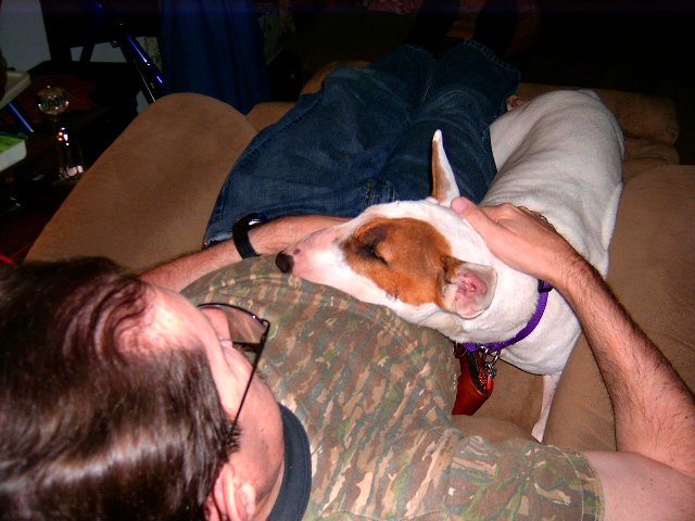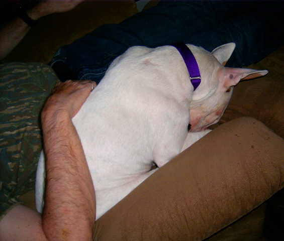 Today has been a day of cuddles and hucklebutts. Gemmie made the time to snuggle with both of us. The Curmudgeon all day and me after he went to bed. She’s a cutie.