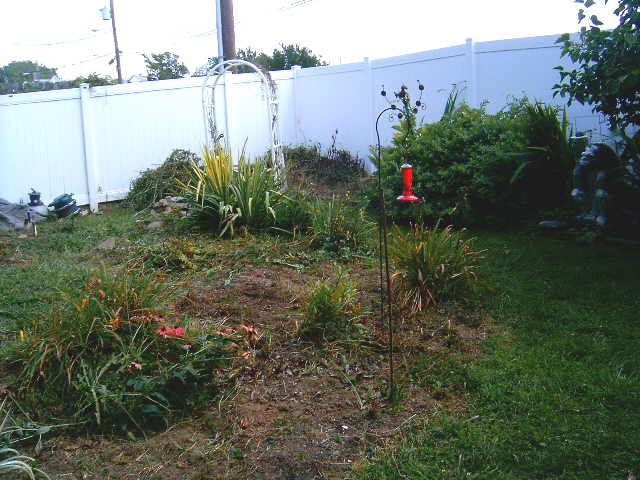 I tried to have a ‘flatten the hill’ party, but no one was interested. Just like no one is interested in a large clump of zebra grass, a large Yucca plant, a Stella D’oro day lily, Lily of the Valley, Sweet Woodruff, and one of two miniature lilac plants.