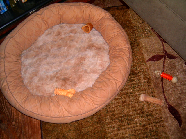 Next, Miss Lucy will tidy up by putting all of them into her bed. Wish she’d put them into the toy box, but at least she does pick up after herself and Gavin.
