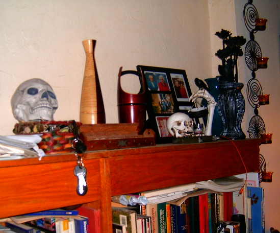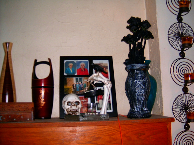 My kitchen table, stacked high with Halloween decorations for the porch, groans under the load. Two giant cauldrons are in the living room all filled with more stuff. Later, one will brim over with candy and glow in the dark bracelets.