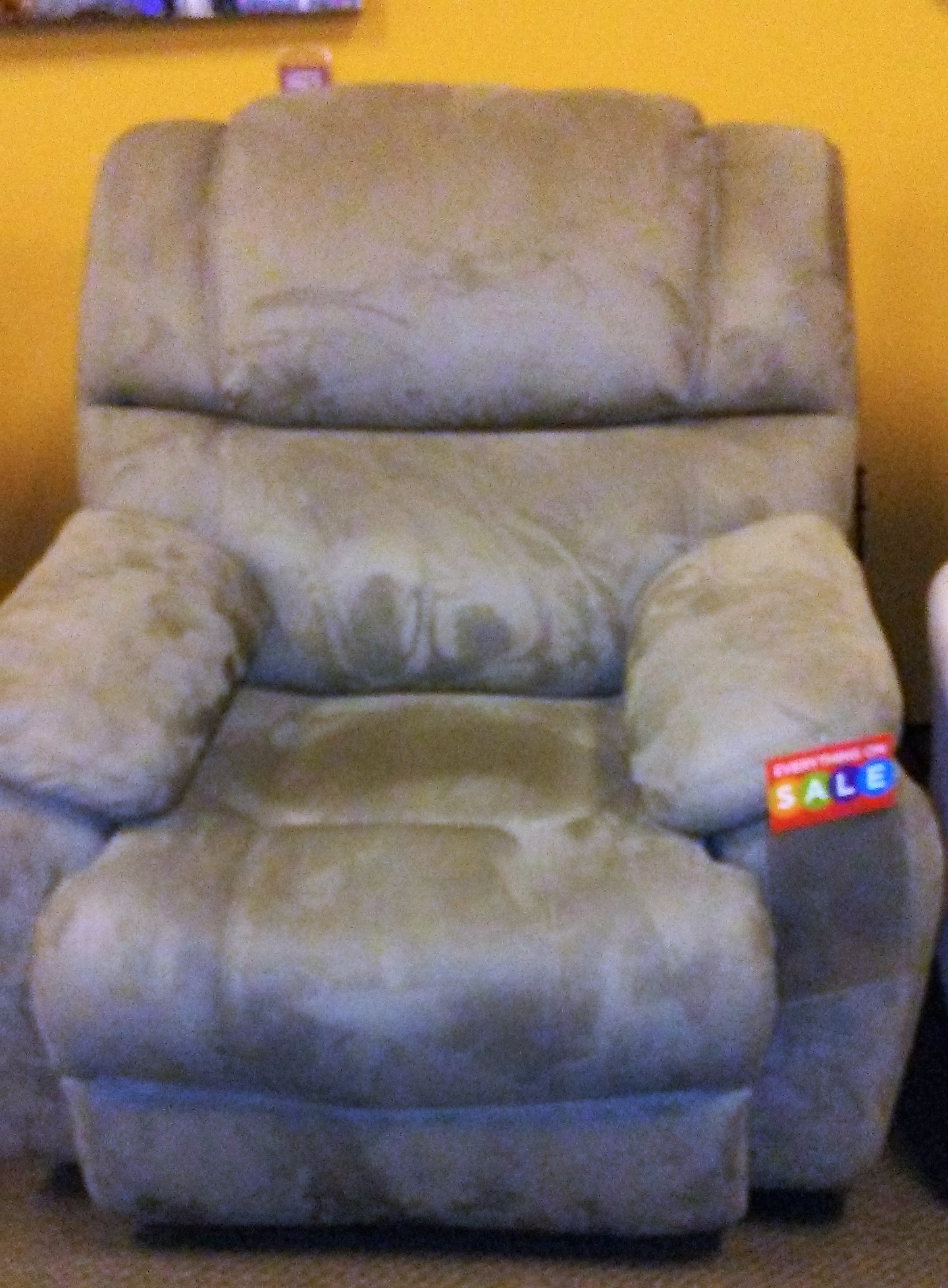 It sure didn’t take him long to find one he liked. The color goes well with the other furniture too. It is bigger and better with a microfiber upholstery. On sale, so we even have a $49.99 credit now.
