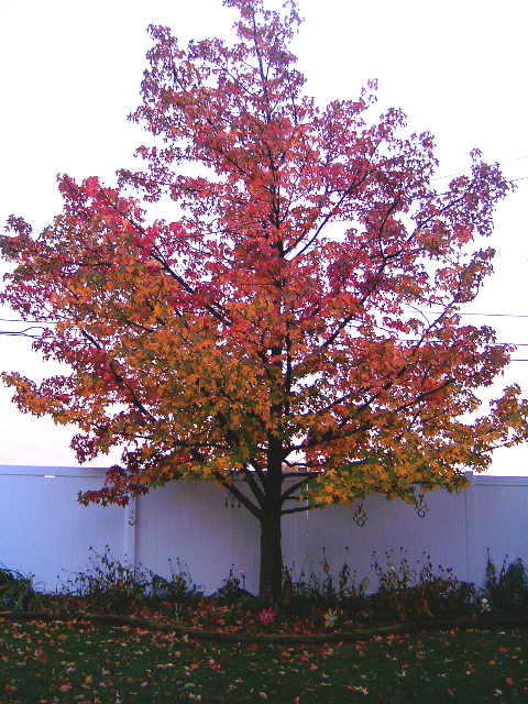 I am so glad I snapped this picture the other day before the tree lost any more leaves. This is our sweet gum tree.