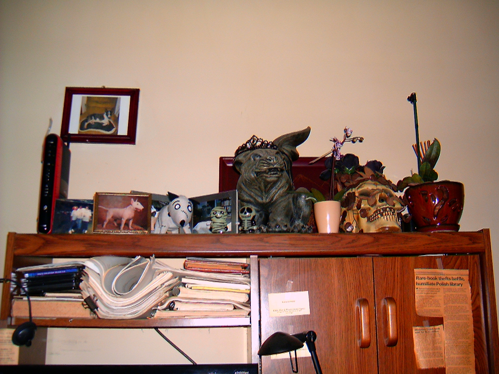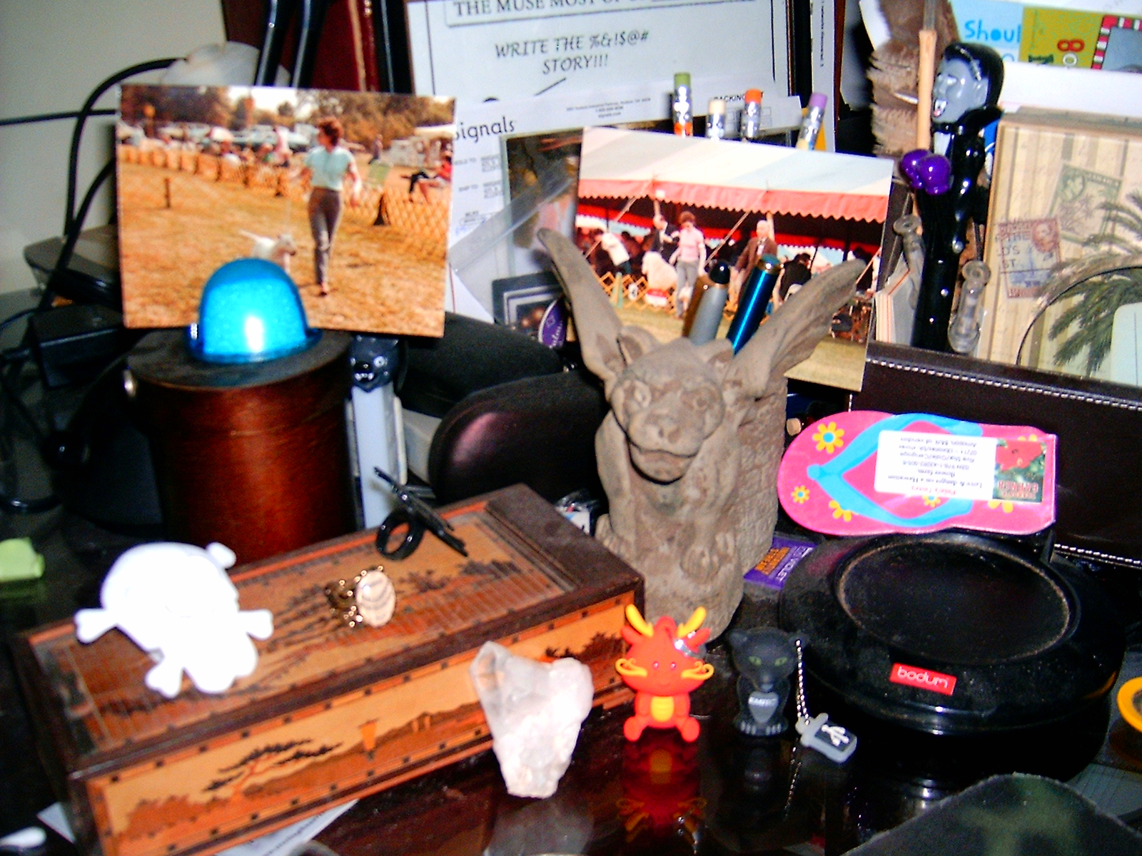 In case any of you have wondered what my desk top looks like, this is what is on my right side and on the top.